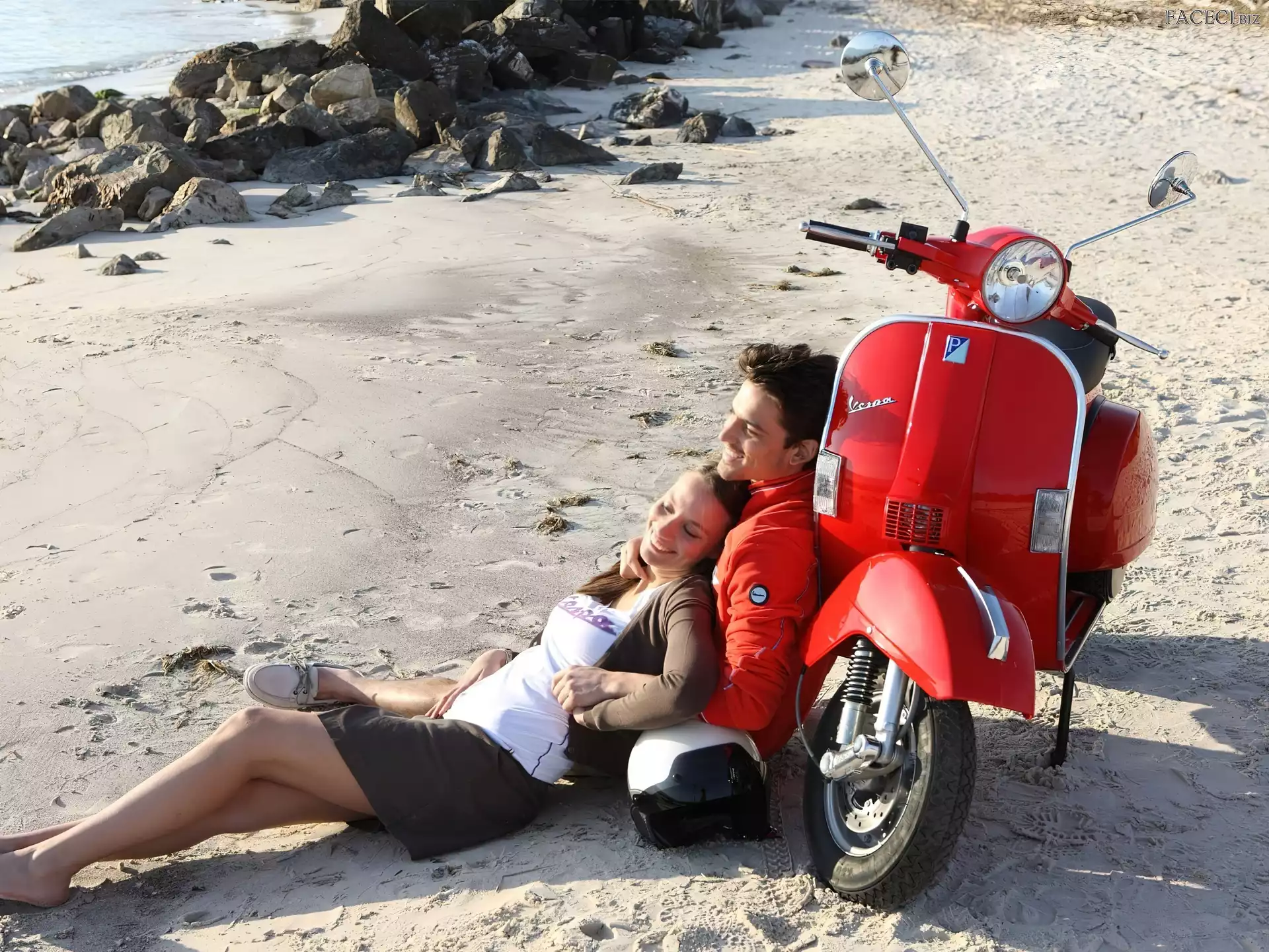 Skuter, Para, Morze, Kamienie, Czerwony, Plaża - faceci.biz